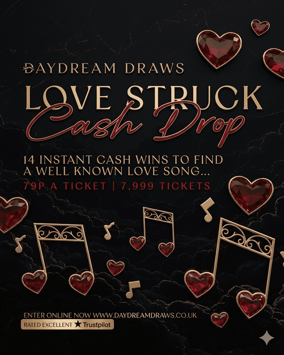The live draw will take place on the Daydream Draws Ltd Facebook page using Google’s random number generator to select the winning ticket number from all Entrants.