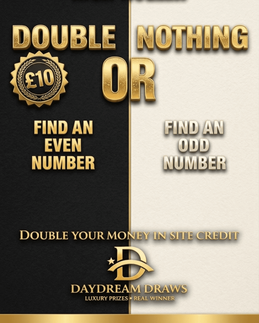 Every other ticket wins you DOUBLE in Daydream Credit! PLUS £10 Daydream Credit end prize