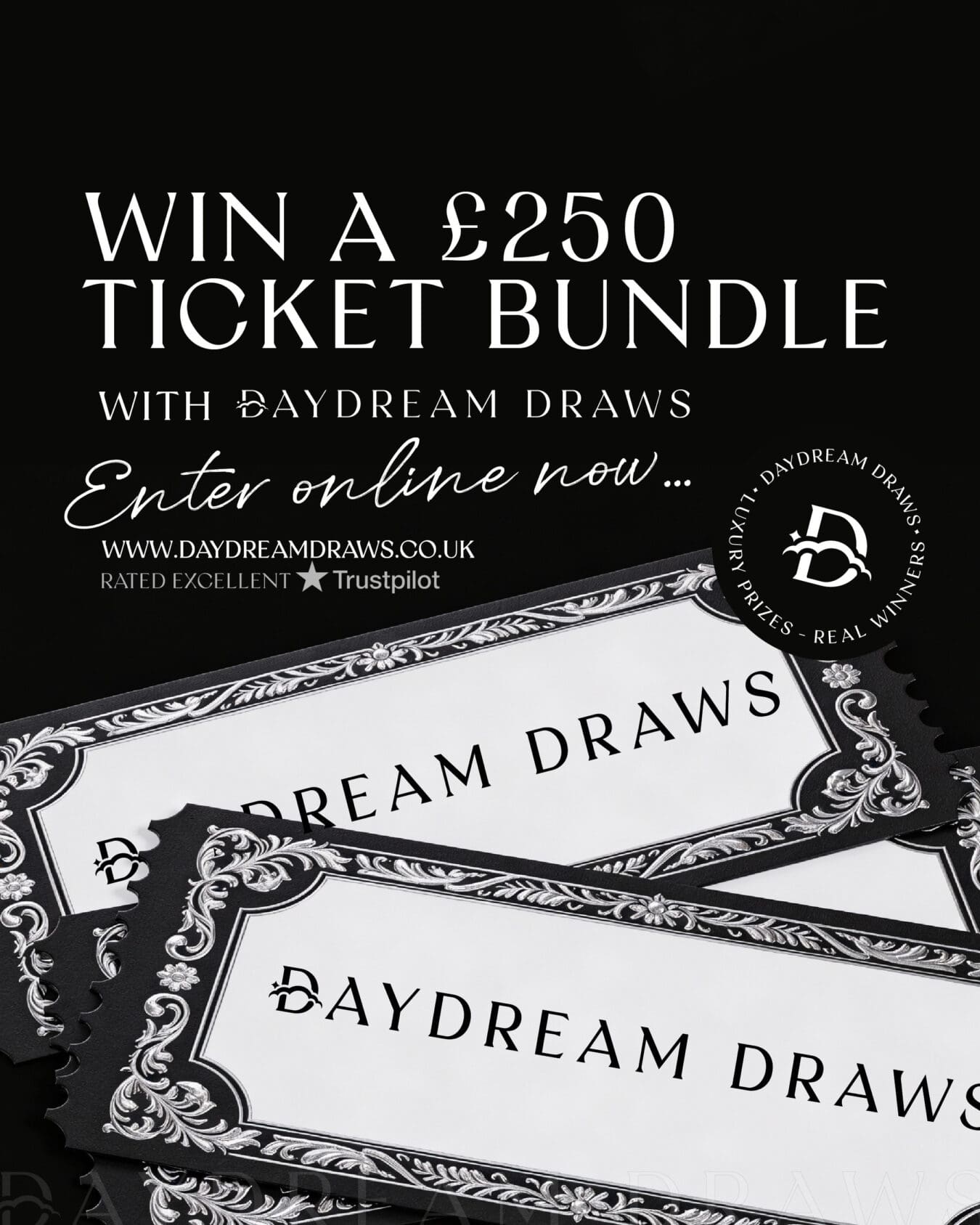 You may enter the competition online or for free (handwritten entry) by post by sending your entry to Daydream Draws Ltd on a postcard. You must have an account on Daydream Draws Ltd for your entry to be processed. All details on your entry MUST correspond to the details on your account to receive the order confirmation and ticket number. Postal entries received without a registered account cannot be processed.