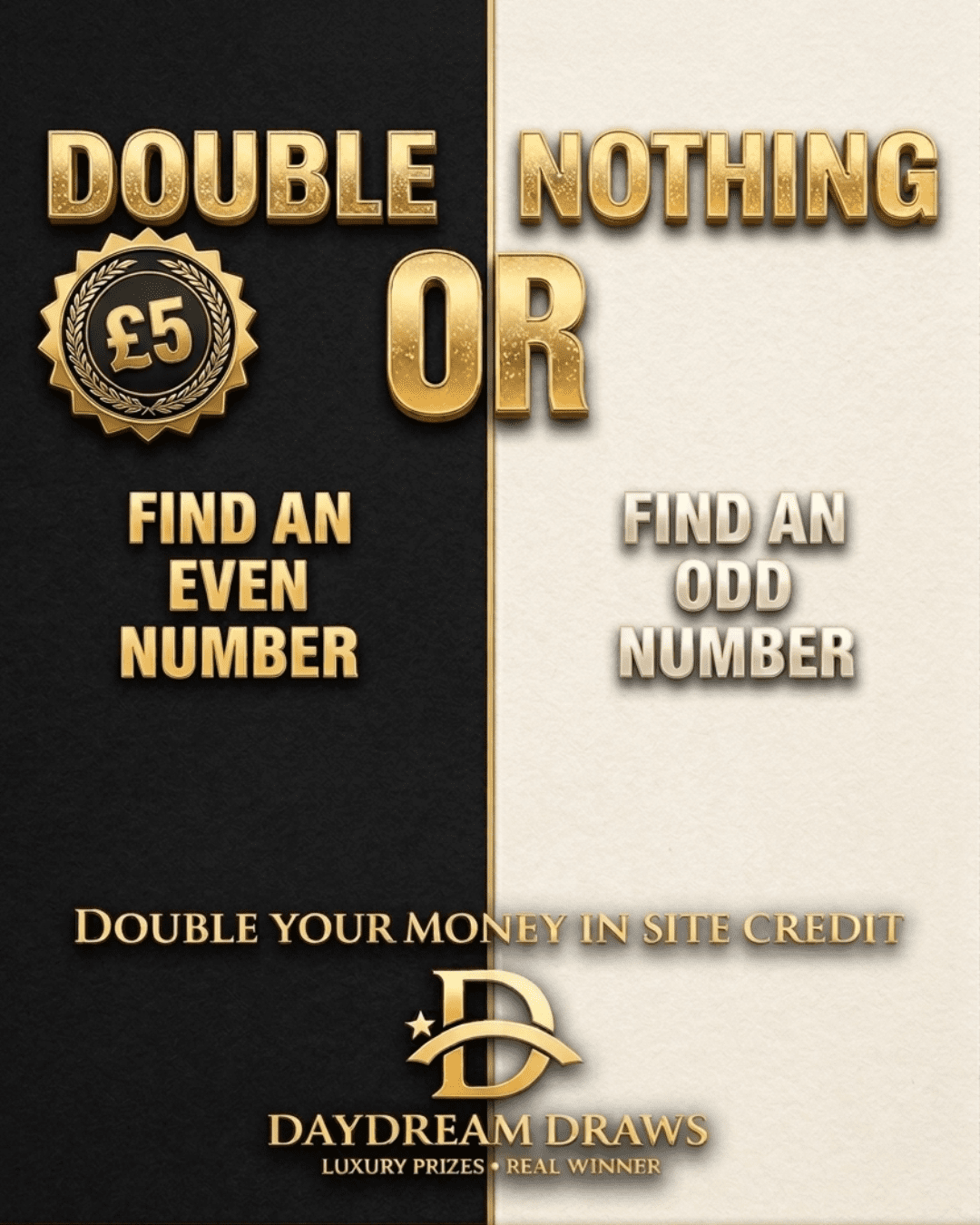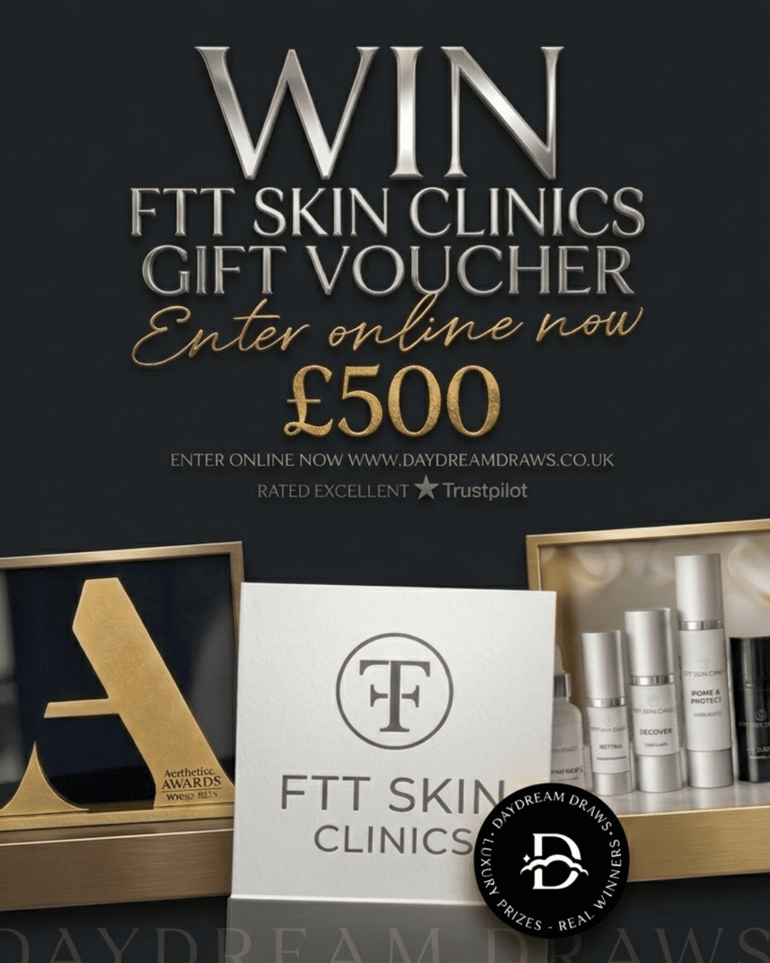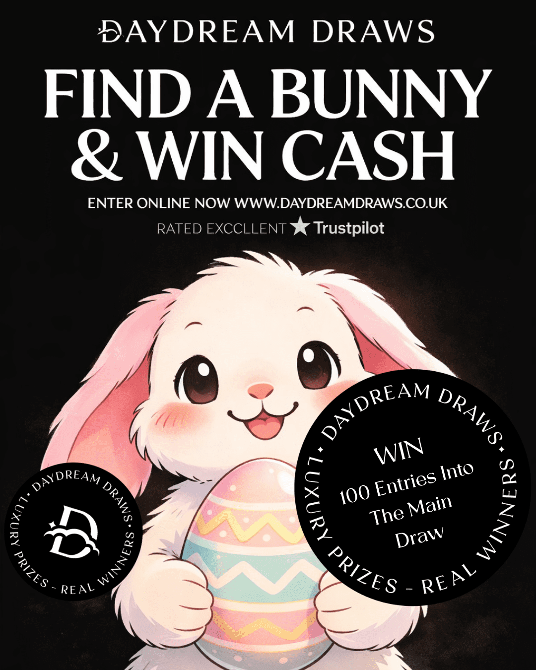 You may enter the competition online or for free by post by sending your entry to Daydream Draws Ltd on a postcard. You must have an account on Daydream Draws Ltd for your entry to be processed. All details on your entry MUST correspond to the details on your account to receive the order confirmation and ticket number. Postal entries received without a registered account cannot be processed.