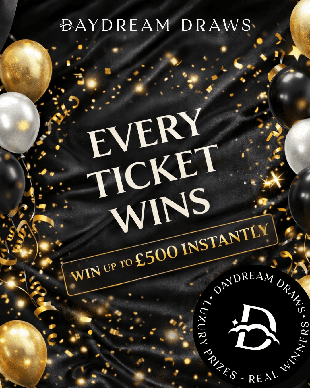 The live draw will take place on the Daydream Draws Ltd Facebook page using Google’s random number generator to select the winning ticket number from all Entrants.
