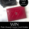 Chanel Classic Card Slip Holder in Pink Caviar with silver hardware. This elegant slim line card holder is perfect for holding cards and notes. One main slip section, a slip slot on the front and two on the reverse. Dark red / pink shade.